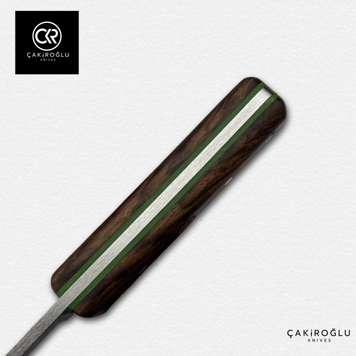 The root walnut handle provides a secure grip and natural elegance, combining comfort with perfect balance during extended use.