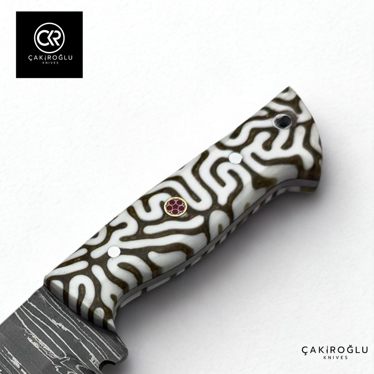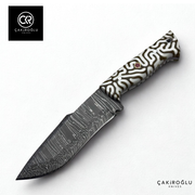 This Damascus Steel hunting knife, where craftsmanship meets modern design, blends elegance with durability. Its hand-forged steel construction gives each knife its own unique patterns, offering aesthetic depth and superior sharpness. The Epoxy Handle features unique patterns created by blending natural elements with resin. Each handle is completely unique in its color transitions and texture just like the knife in your hand. It offers reliable use in nature and carries aesthetic value in collections. This special model is a masterpiece that brings together art and engineering in one body, inspired by nature