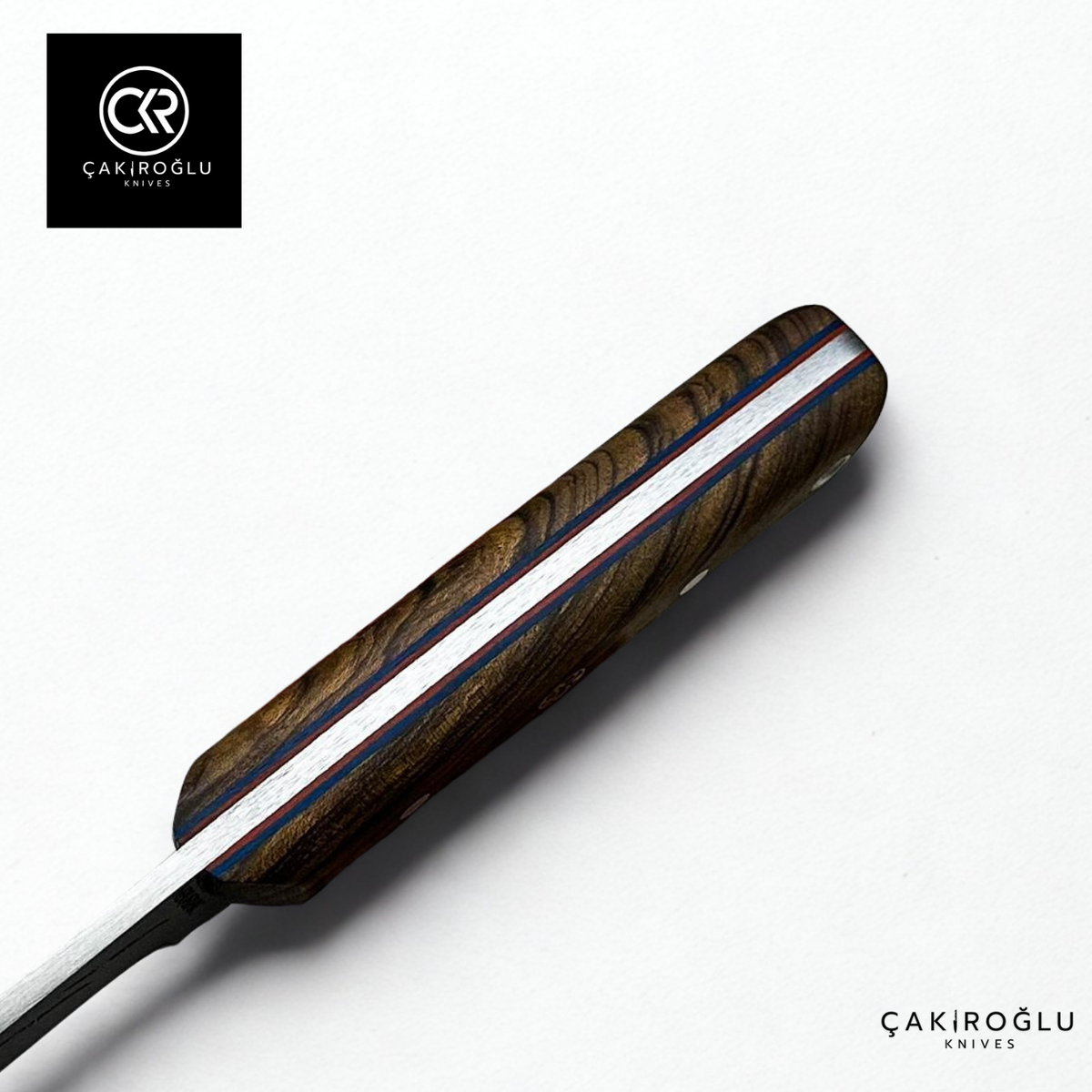 The walnut root handle, carefully shaped by hand, provides a firm and natural grip with excellent balance. Its organic texture ensures comfort and control, even during extended use.