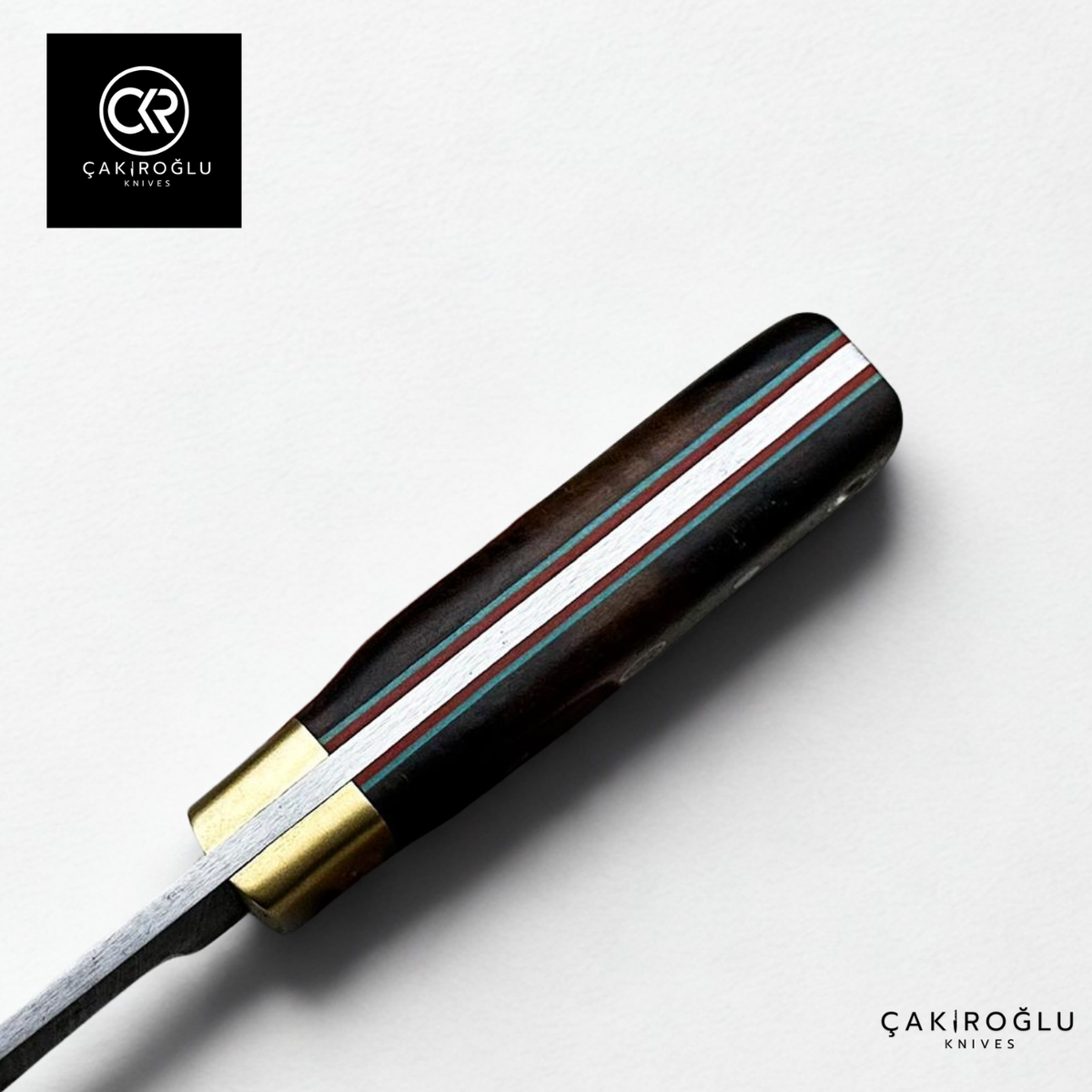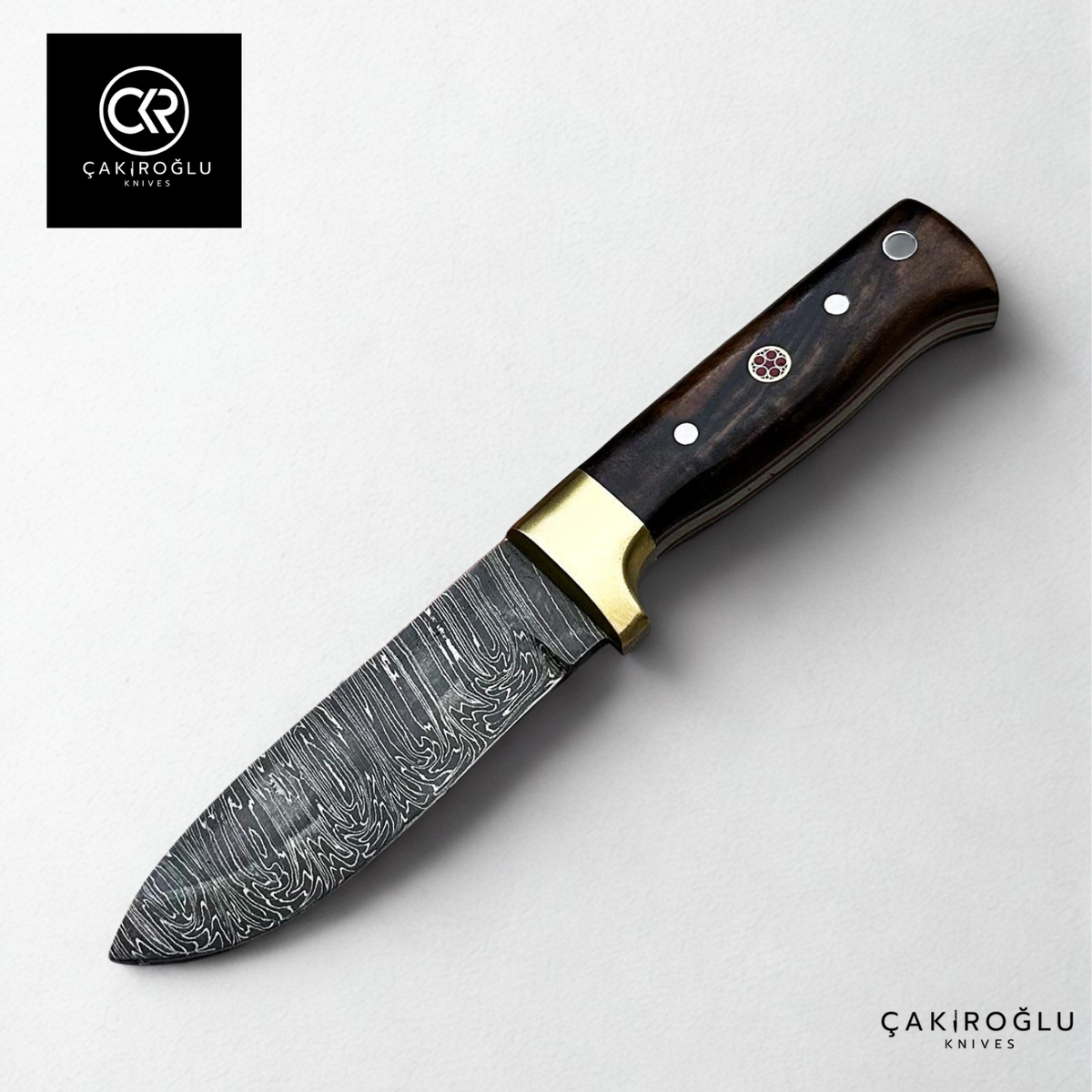 Handcrafted Custom-made Damascus Steel Bushcraft Hunting Knife - Root Walnut Handle & Brass Apron