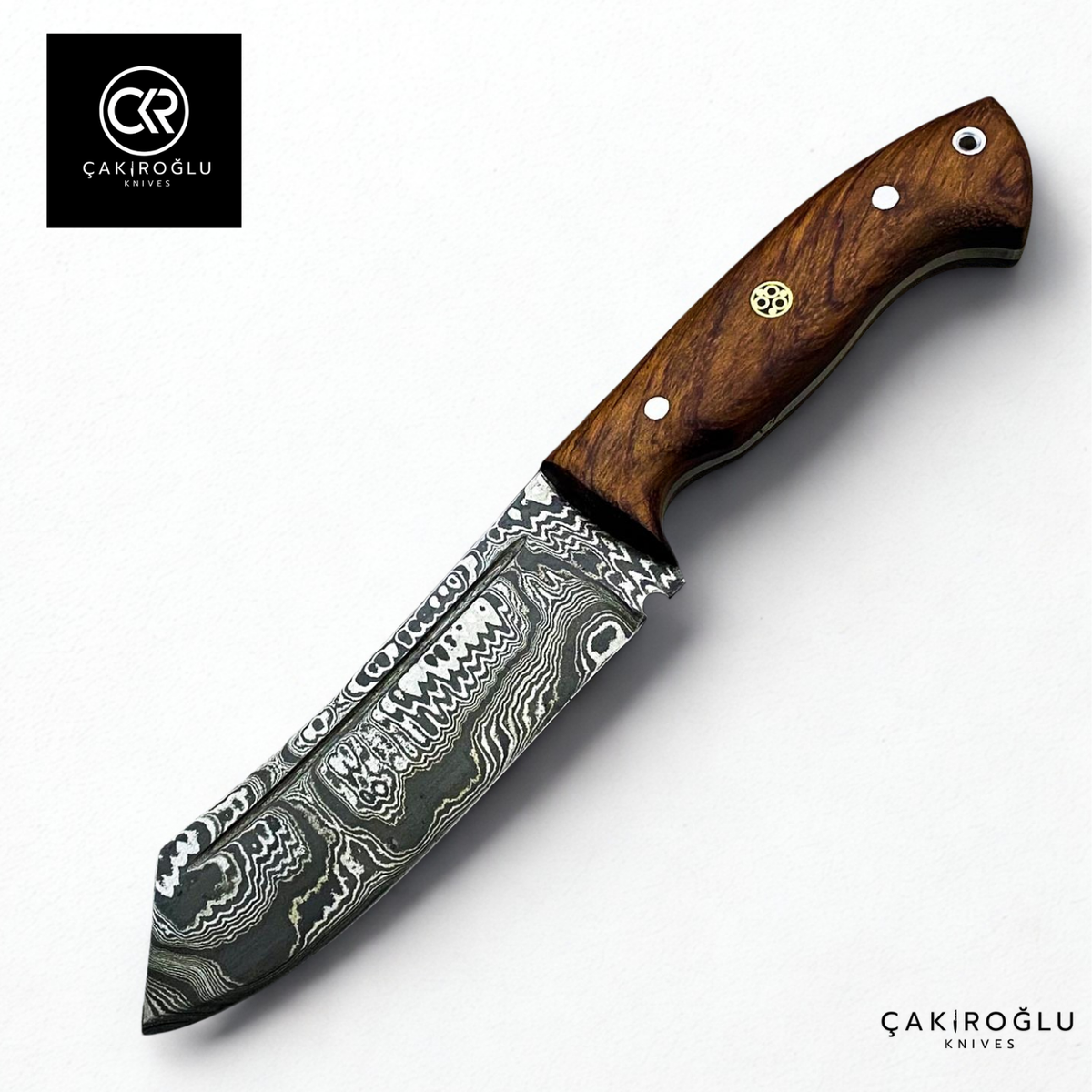Handcrafted Custom-made Damascus Steel & Rosewood Handle Hunting Knife