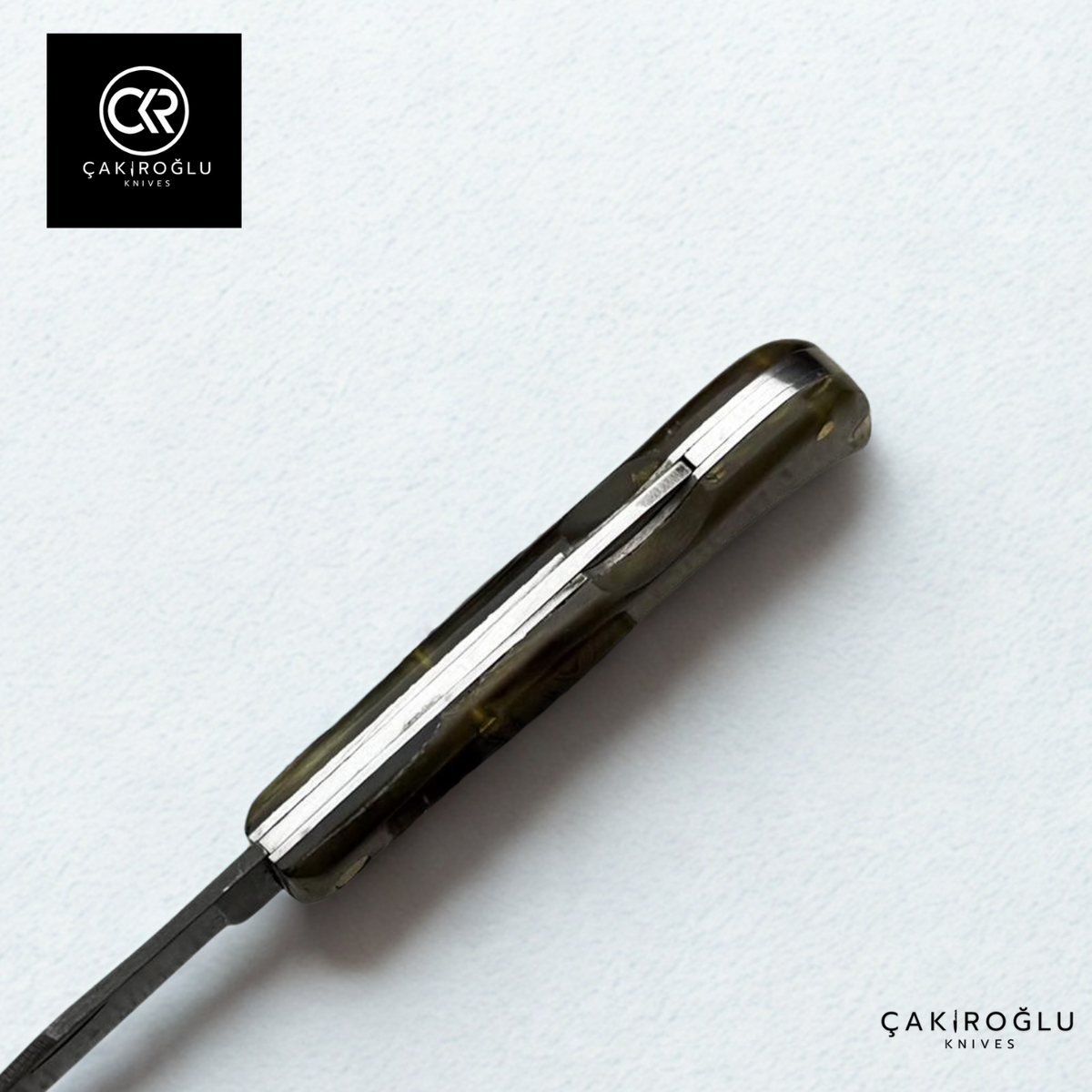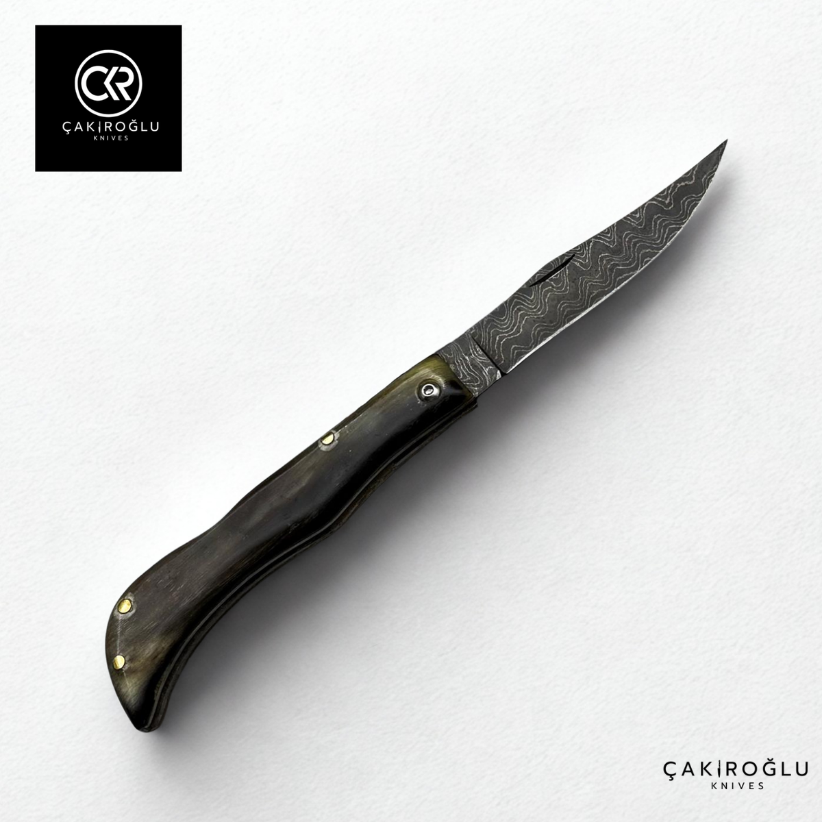 This Folding knife, where traditional craftsmanship meets modern expertise, is a special piece that stands out both for everyday use and as a collector's item. Damascus steel, with its eye-catching wavy patterns, is known for its durability and sharpness. The natural ram horn handle gives each knife a unique character, making it one-of-a-kind. The back lock mechanism enhances safety and provides a long-lasting experience with its sturdiness. With its classic style and timeless elegance, this pocket knife is both functional and collectible, something you will be proud to carry with you.