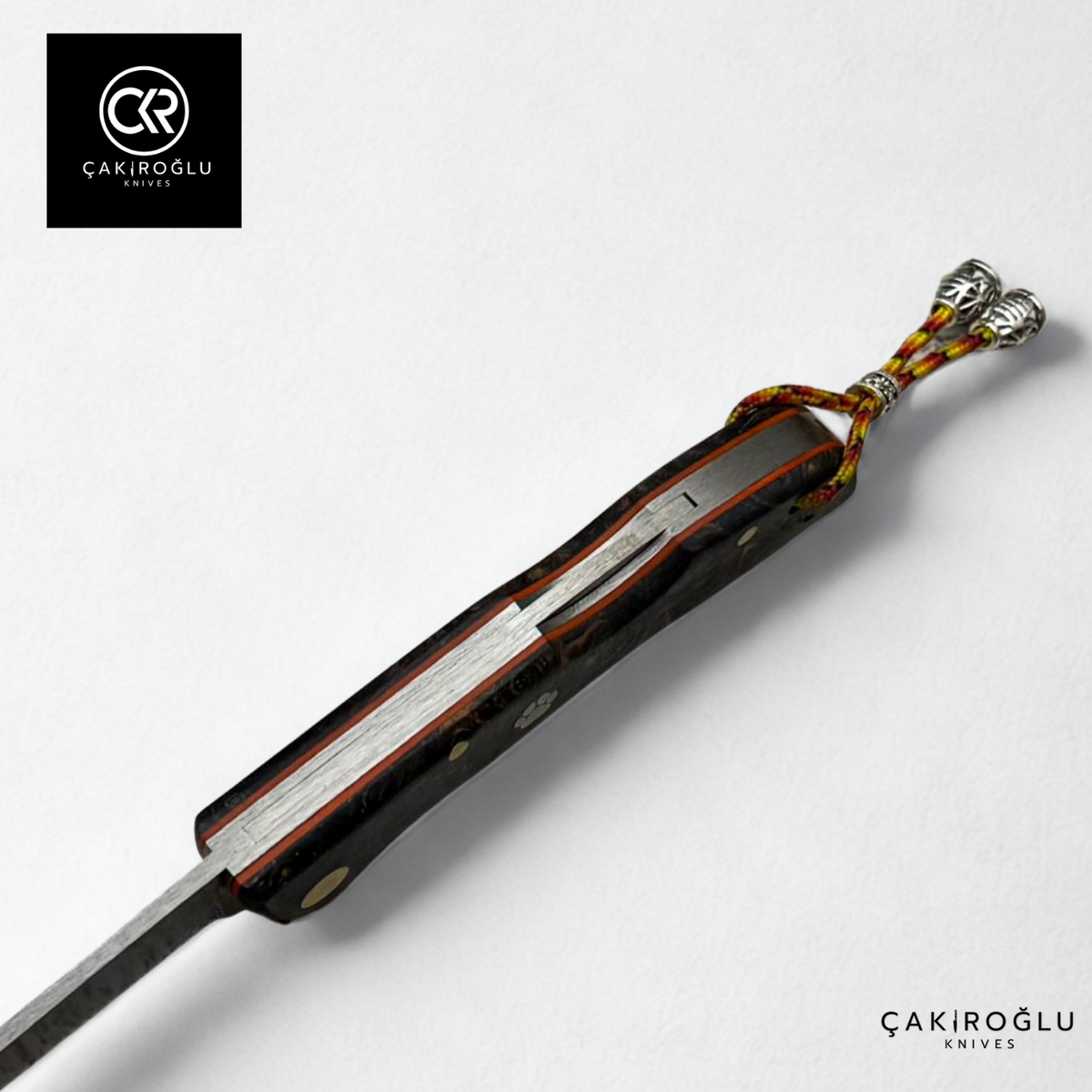 Showy Series Handcrafted Folding Knife - Damascus Steel & Stabilized Wood Handle