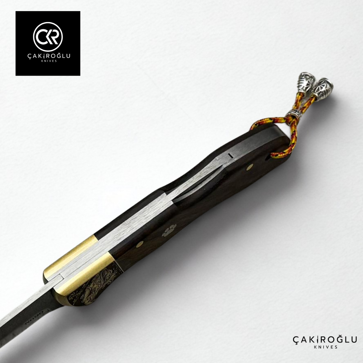 The large-size Showy Elite is a special model that offers power and elegance at the same time. While it provides maximum performance in hunting, camping and nature activities, its handcrafted engraved brass apron takes it beyond a standard pocket knife. These details make each piece unique and collectible.