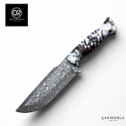 The 328 Mountaineer Pine Cone is a special model that combines the raw beauty of nature with the elegance of craftsmanship. Its hand-forged Damascus steel blade delivers superior performance in challenging conditions with its sharpness and durability, while its pinecone-textured epoxy handle provides a unique aesthetic inspired by nature. Each handle is completely unique due to the random patterns of the natural pinecone structure, giving each knife its own distinct character. The layered steel texture combined with the transparent depth of the epoxy creates a striking balance both visually and functionally. The 328 Mountaineer Pine Cone is both a standout piece of art in collections and a reliable companion representing the spirit of harmony with nature.