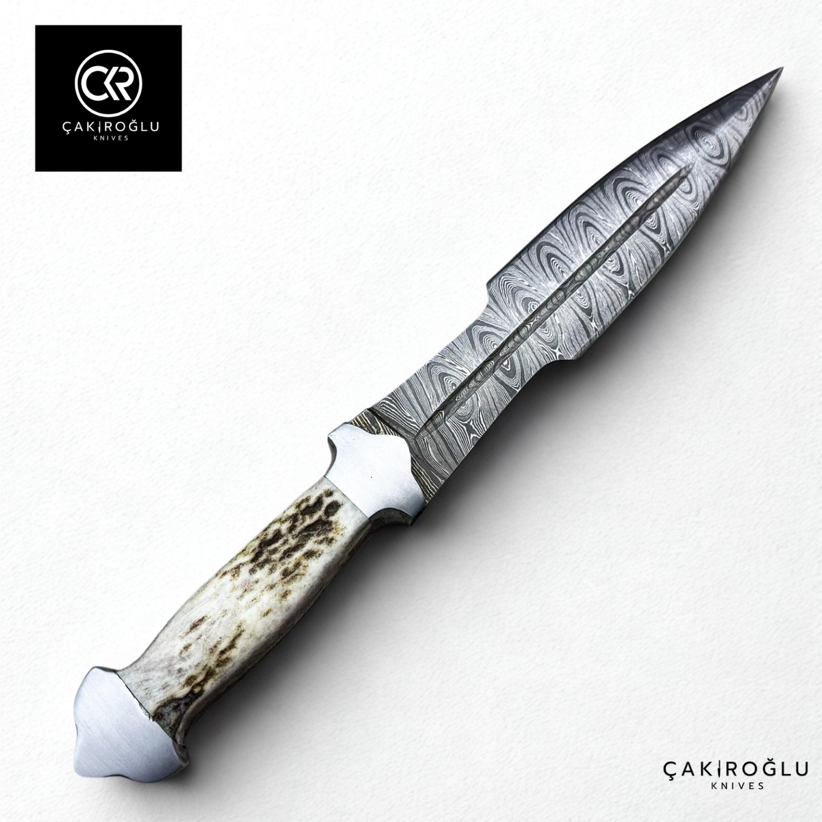 Çakıroğlu Damascus Dagger – Handcrafted Collector’s Knife with Stag Antler Handle